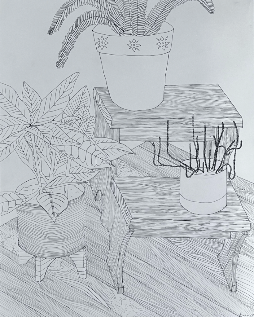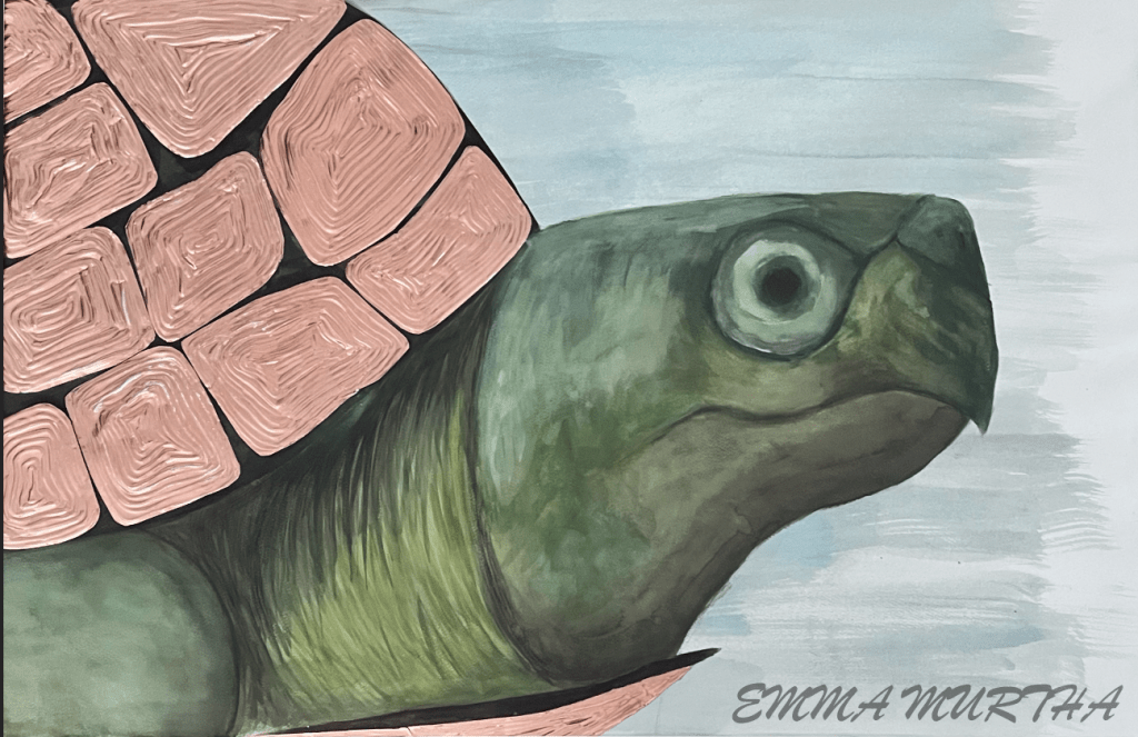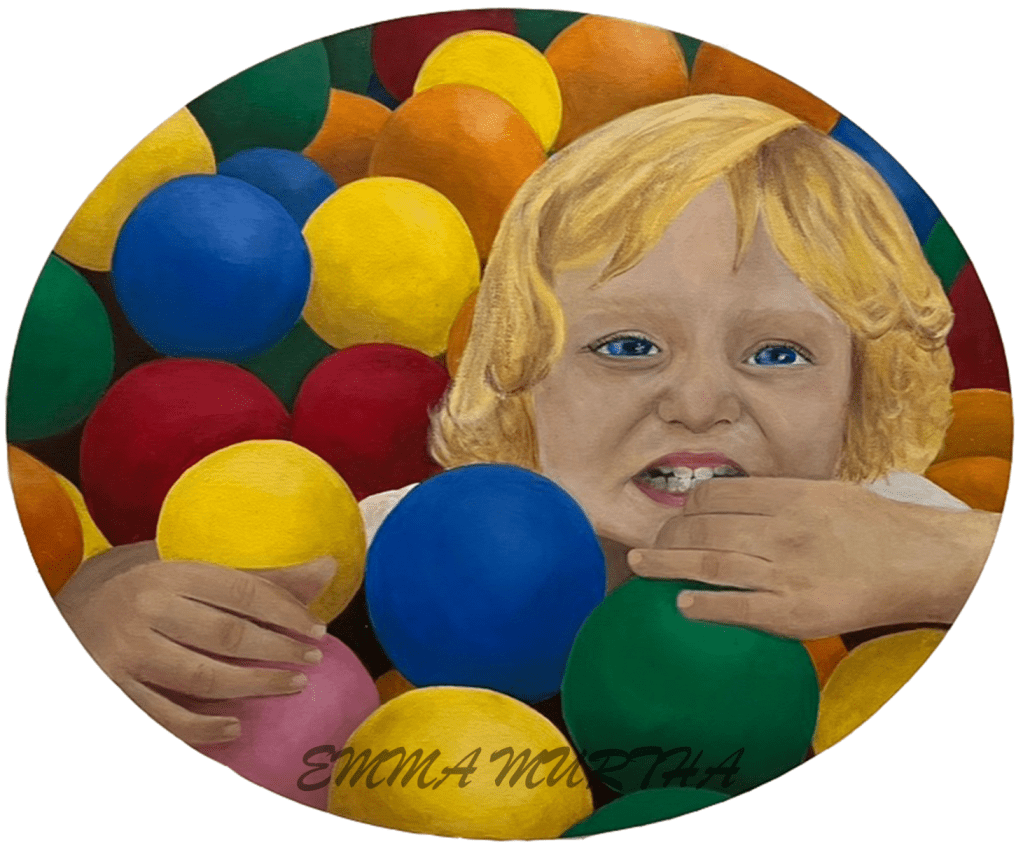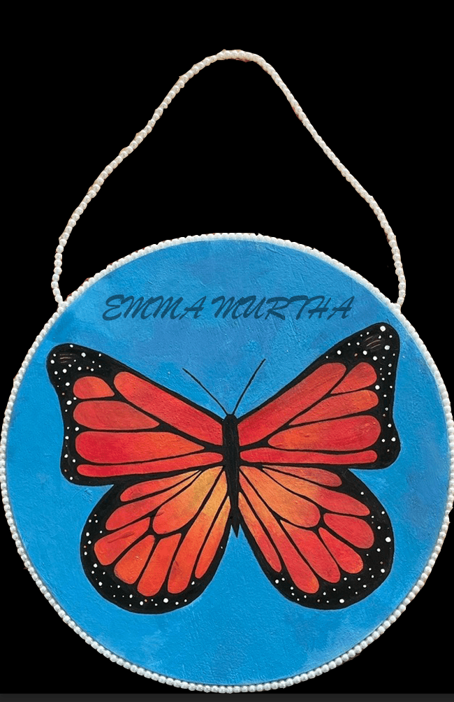 Acrylic on wood, edges wrapped in pearls 5×5.